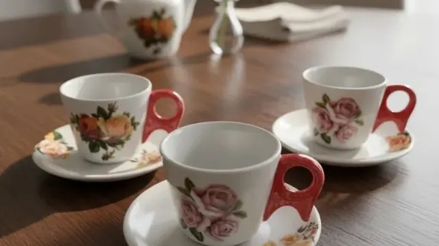 KIT 8 PEÇAS ,MESA POSTA CAFE ,CHA ,PORCELANA VAI AO FORNO E MICRO ONDAS
